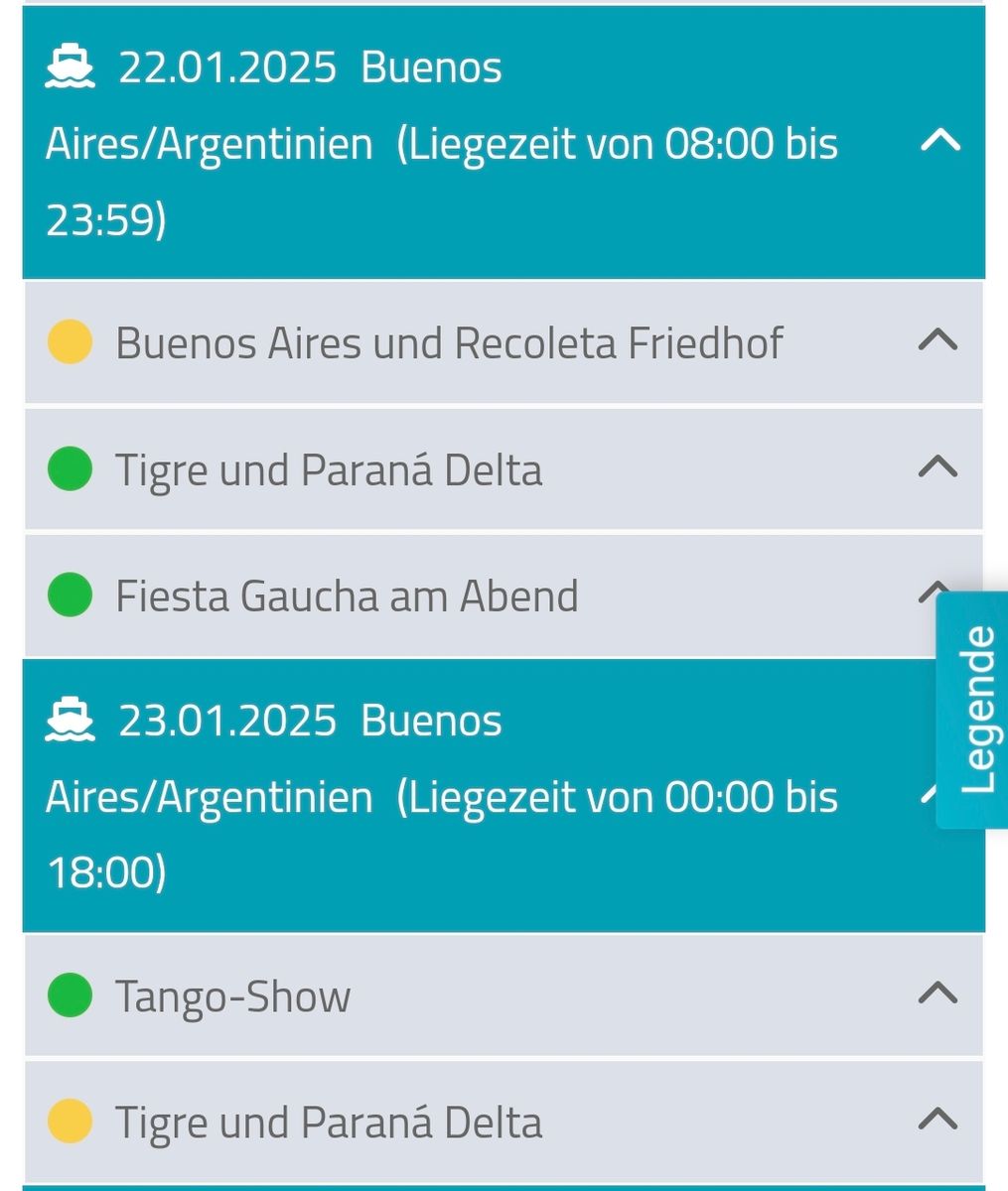 Buenos Aires bei uns auch. Ich denke bzw hoffe das kann nicht alles sein. Schade, dass aktuell die E Bike Tour gestrichen wurde. Diese war bei der Route auf der Homepage noch aufgeführt.