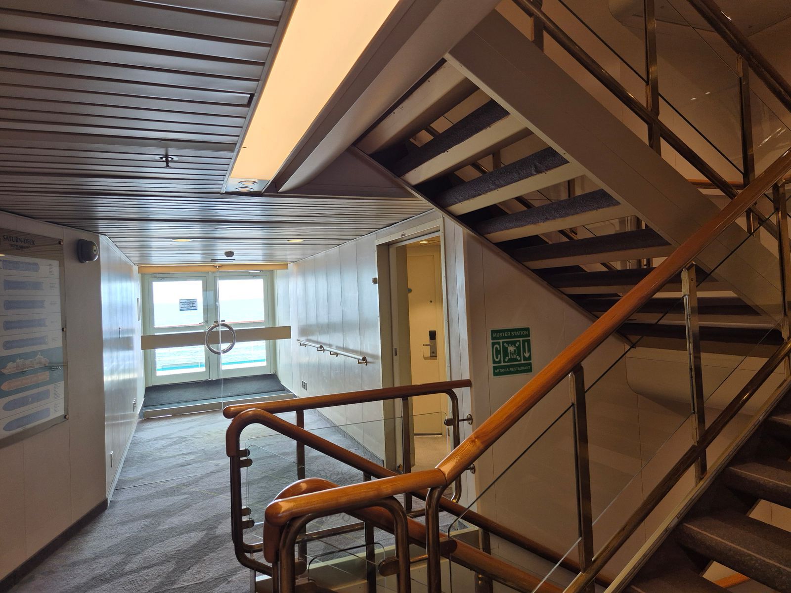 So sieht Kabine 4607 vom Treppenhaus gesehen, aus..(die Türklinke, ist hinter dem Geländer zu sehen..)