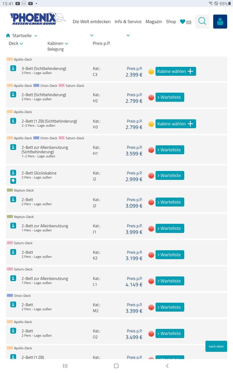 Phoenix muss da noch entscheiden - ich werde die Hardcore mit der entsprechenden Kabine machen, ob als Umbuchung oder Neubuchung - ich storniere da notfalls meine derzeit geplante Reise. Was ich aber weiss, sie geben Alleinreisenden nicht gerne spezielle Kabinen. Buchen kann man sie aber.