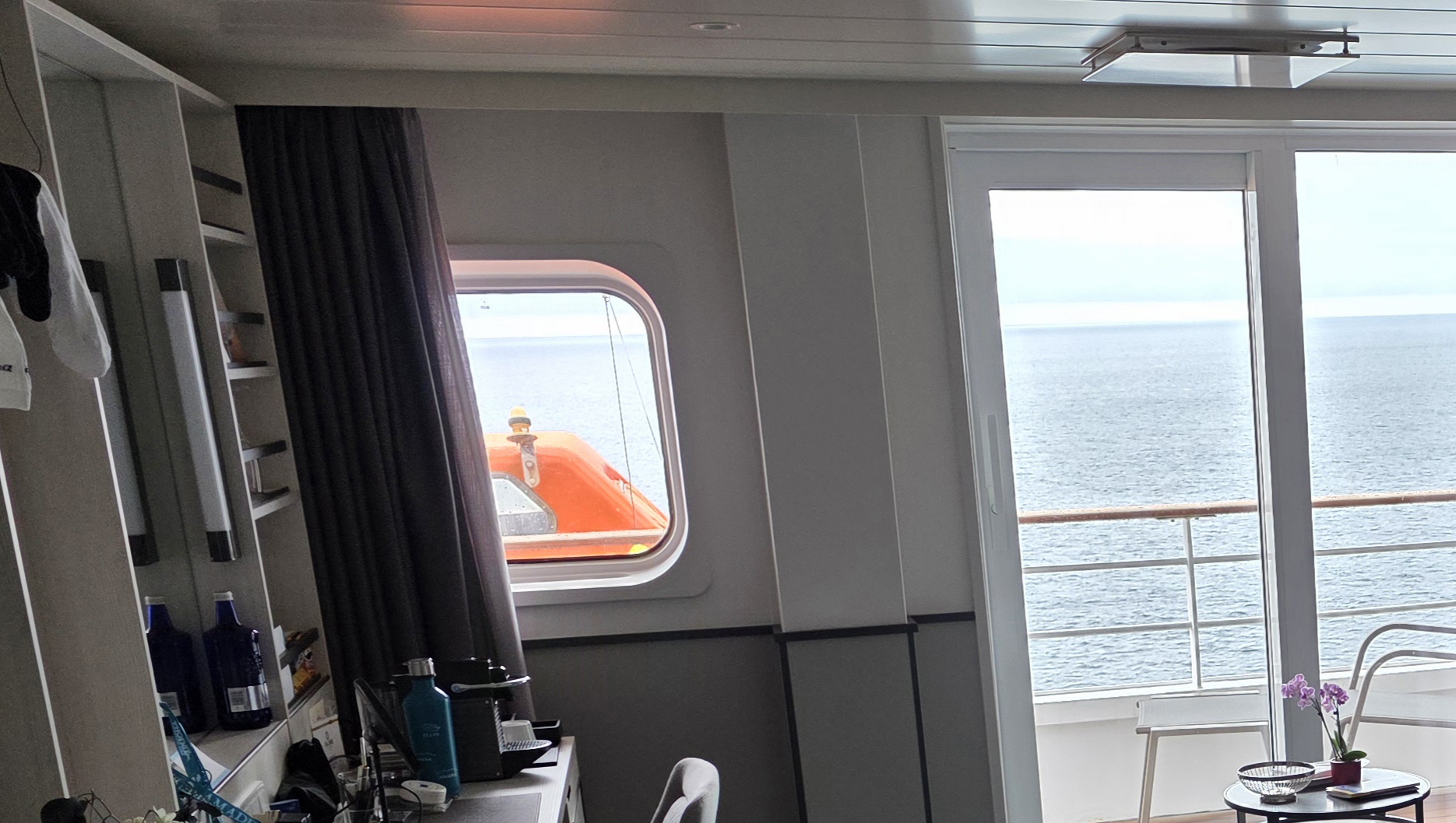 Übrigens hatten wir eine Standard-Außenkabine mit leichter Sichtbehinderung.
