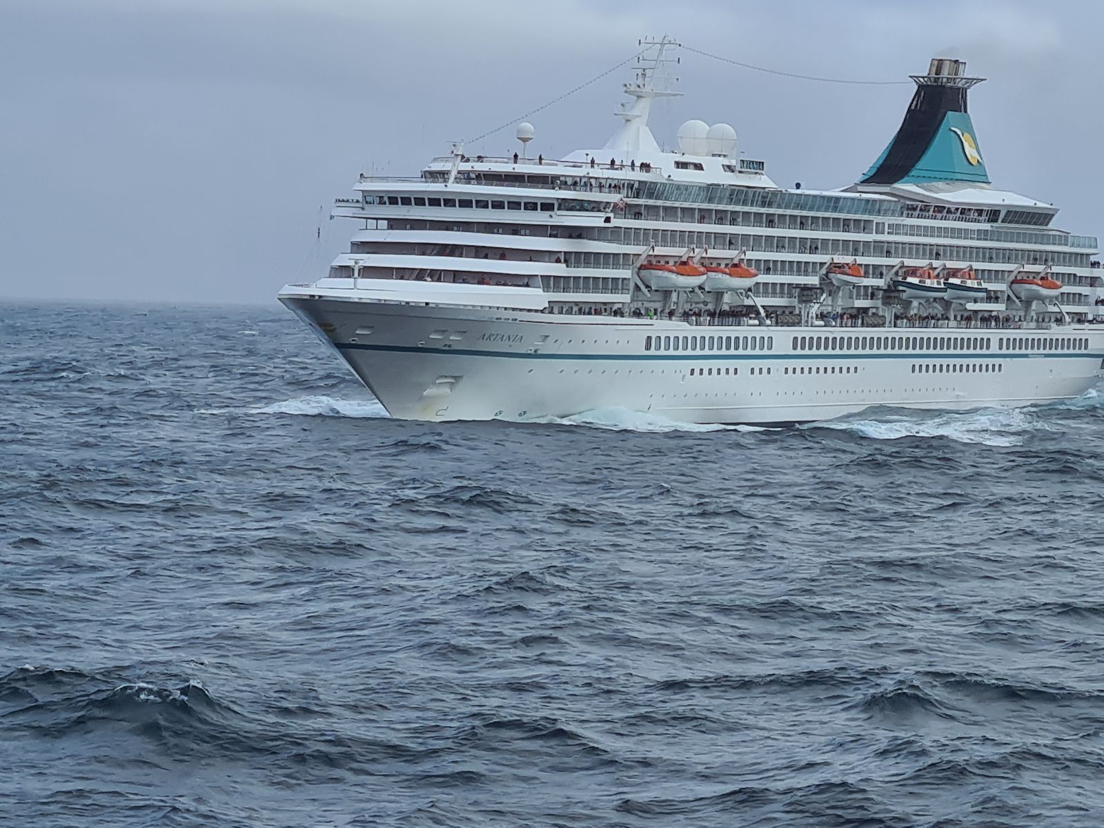 Treffen amera, Artania. Da hatten wir den großteils des Sturms schon hinter uns und die Artania fuhr hinein