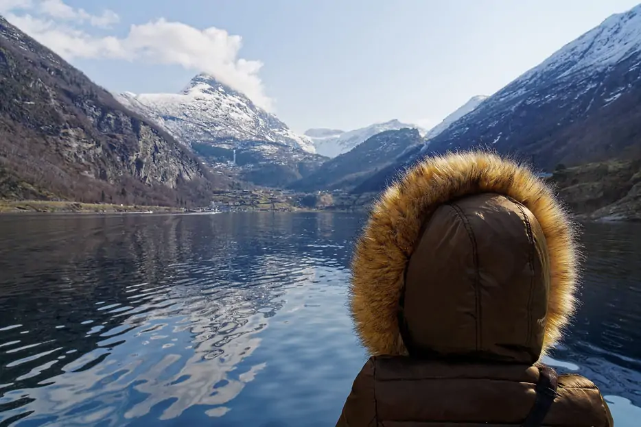 "In den Wintermonaten liegt der Geirangerfjord urtümlich und unberührt zwischen schneebedeckten Bergen. Nur sehr wenige Touristen kommen um diese Jahreszeit hierher. Mit Ausflügen von der Havila Capella von Alesund aus per Katamaran-Boot kommen erstmals Kreuzfahrt-Reisende auch in den Wintermonaten hierher – und genießen das Unesco-Weltnaturerbe zu seiner vielleicht schönsten Jahreszeit."