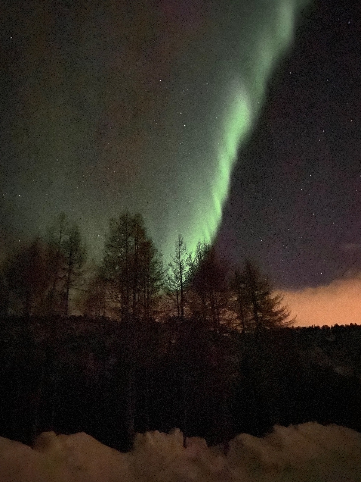Ja, es macht mega Spass, was ein Schnee hier oben, die Sol tief verschneit. Und eben, vor ein paar Minuten, in einer kleinen Wolkenlücke tatsächlich die ersten Polarlichter