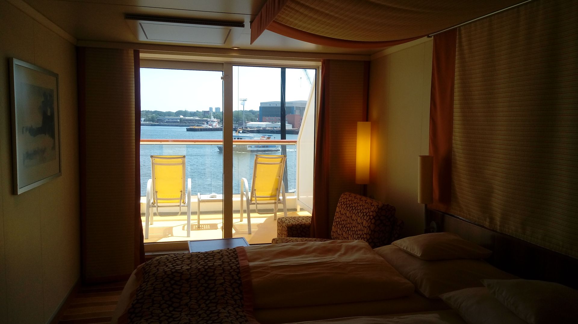 Wenn man in Familie reist oder mit Freunden, die direkt eine Kabine daneben haben, kann man die Balkon-Trennungen wegklappen lassen. Das geht bei anderen Balkon-Kabinen natürlich auch. Aber hier kann man sehen, wie es dann aussieht. Und es ist auch noch größer. Ich hoffe, man kann das alles an den Bildern gut erkennen.
