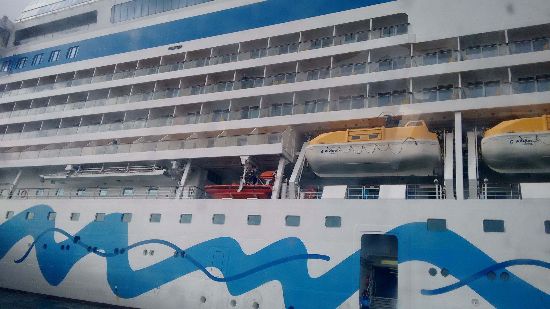 Das ist eine von den Kabinen, bei denen der Balkon größer ist. Auf der einen Seite grenzt er direkt an die Rettungsboote.