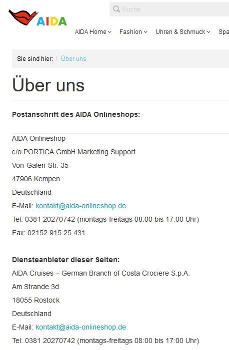 Siehe auch hier: https://www.aida-onlineshop.de/Ueber-uns/