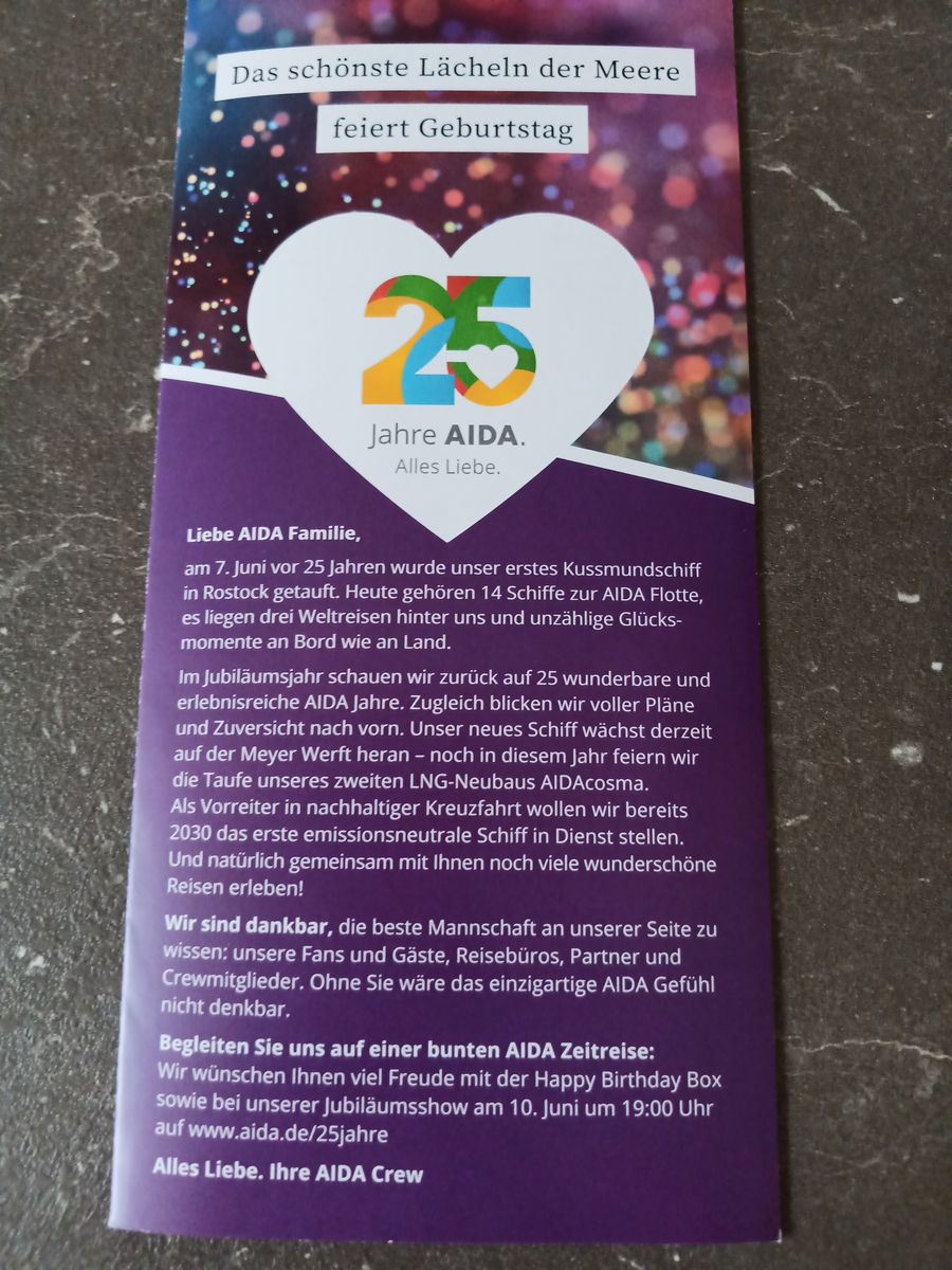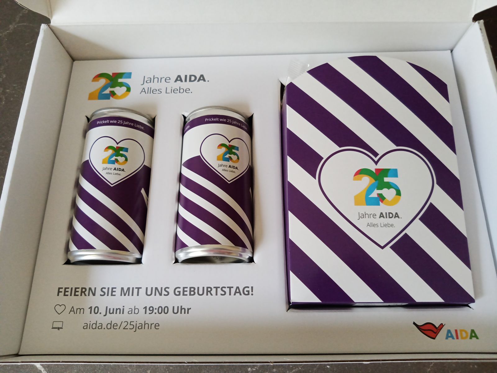 Meine bestellte AIDA-Geburtstagsbox kam heute (ohne DHL-Vorankündigung) an.
