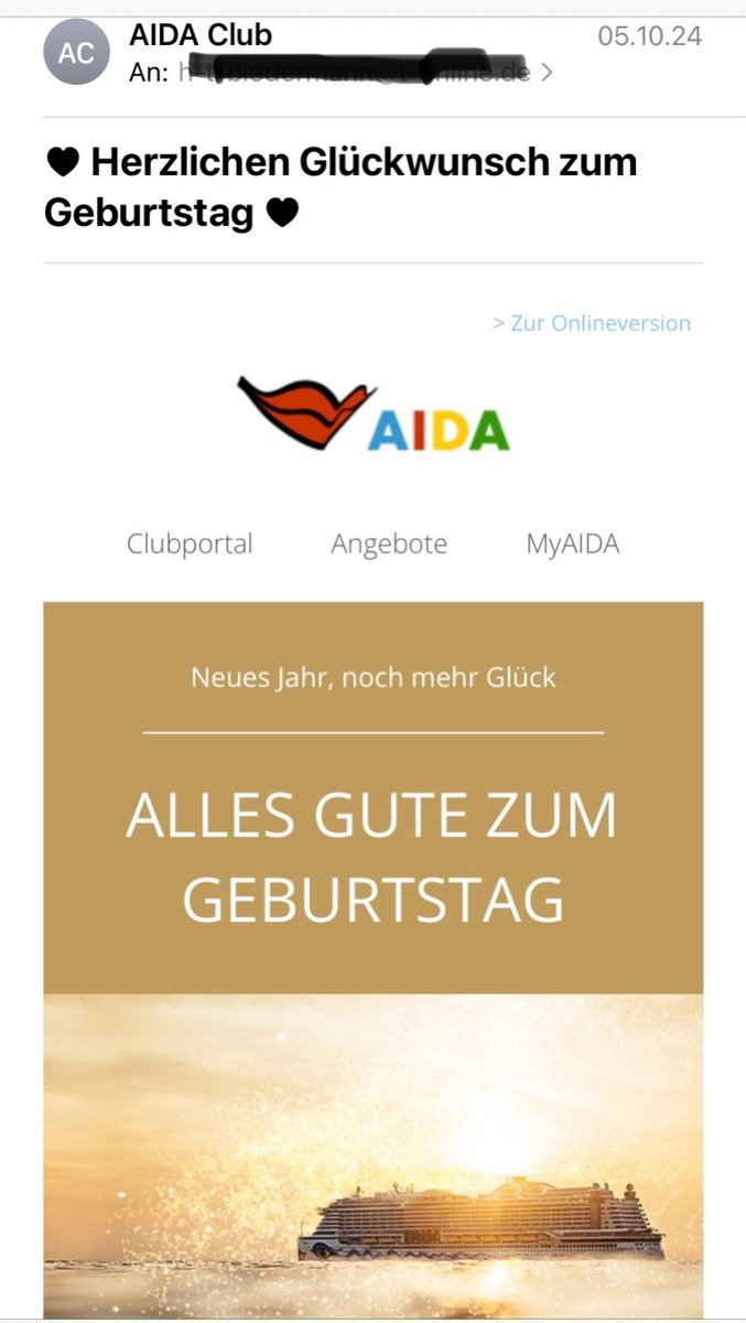 Gibt es als Clubmitglied den Gutschein für den AIDA Shop zum Geburtstag noch 🤷♀️?