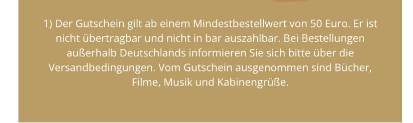 Mindestbestellung ist 50€. Möglicherweise ist der Gutschein auch abhängig von der clubstufe 🤔🤔