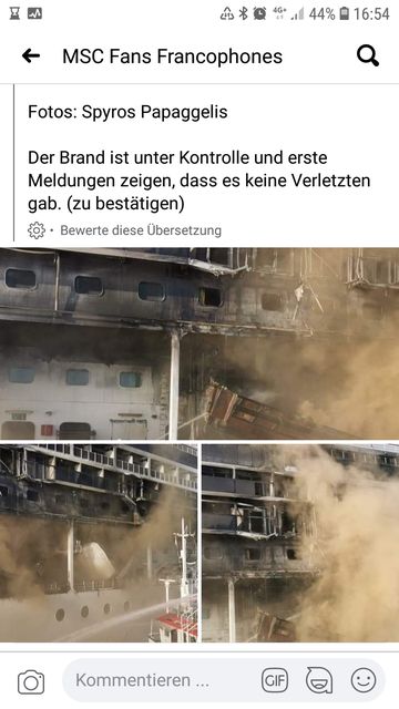 Hier gibt es auch noch ein Video vom "Feuer" auf der MSC Lirica