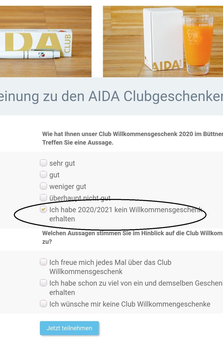 Warum lügen? Unsere Reisen wurden 2020 auch abgesagt sowie in 2021 auch. Eine Reise im Oktober ist noch offen, so wie es aussieht, wird diese auch abgesagt. Jedenfalls habe ich bei "kein Clubgeschenk erhalten", einen Haken gesetzt.