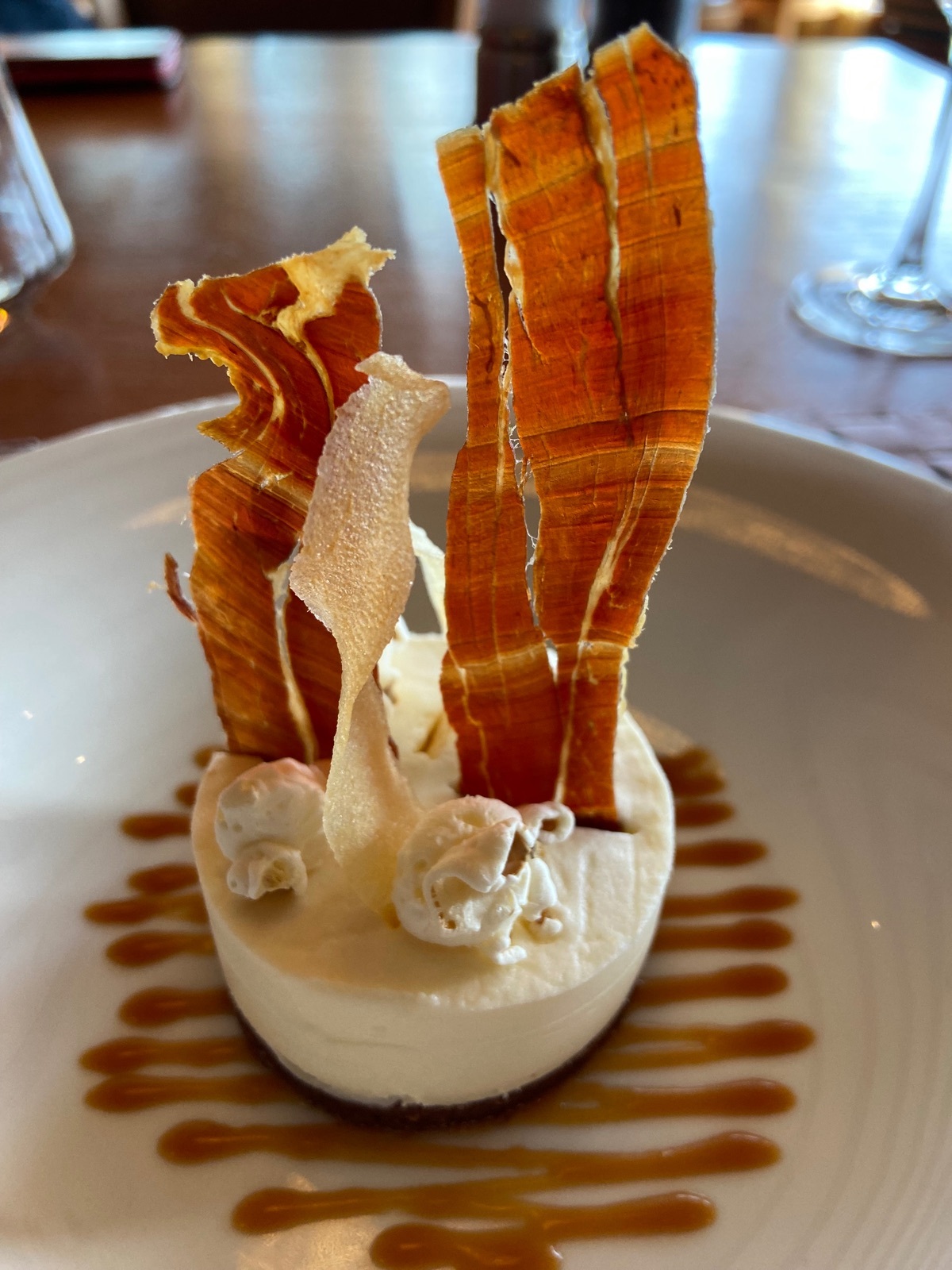 Cheesecake bekommen. Das was da so raus ragt, war gedörrter Schinken - tolle Kombi.