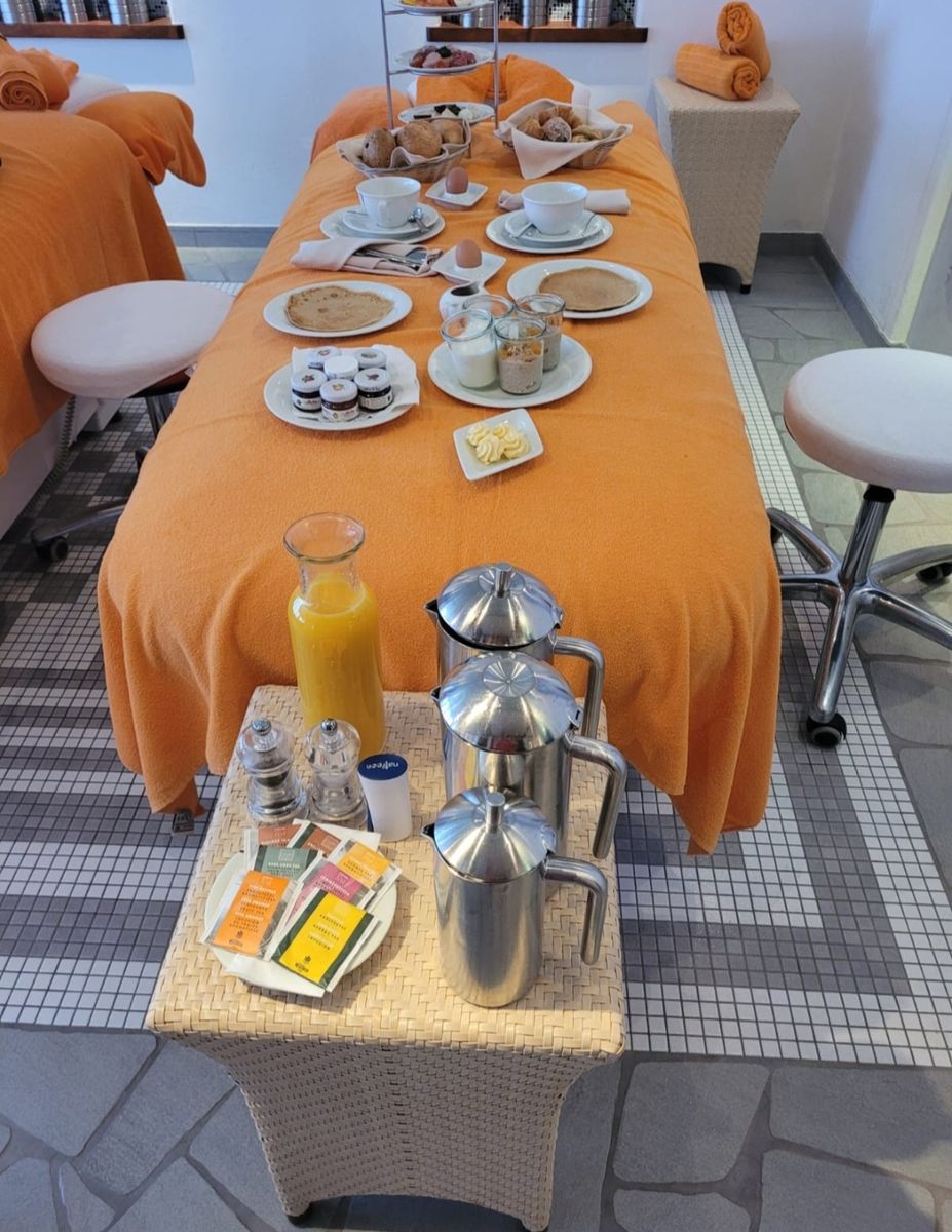 Frühstück auf eine Massageliege ist gerade nicht soo sagen wir schön.