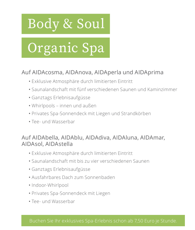 Wir haben das vorgestern auf der Aidaluna gemacht. Der Termin war etwas ungünstig, da die Luna an diesem Tag in Cartagena spät angelegt hat und spät abgefahren ist. Wir waren auf einem Ausflug und sind dann sofort ins Spa. Mit uns war noch eine weitere Familie da wir waren also fast alleine. War sehr schön und angenehm. Sehr zu empfehlen :)