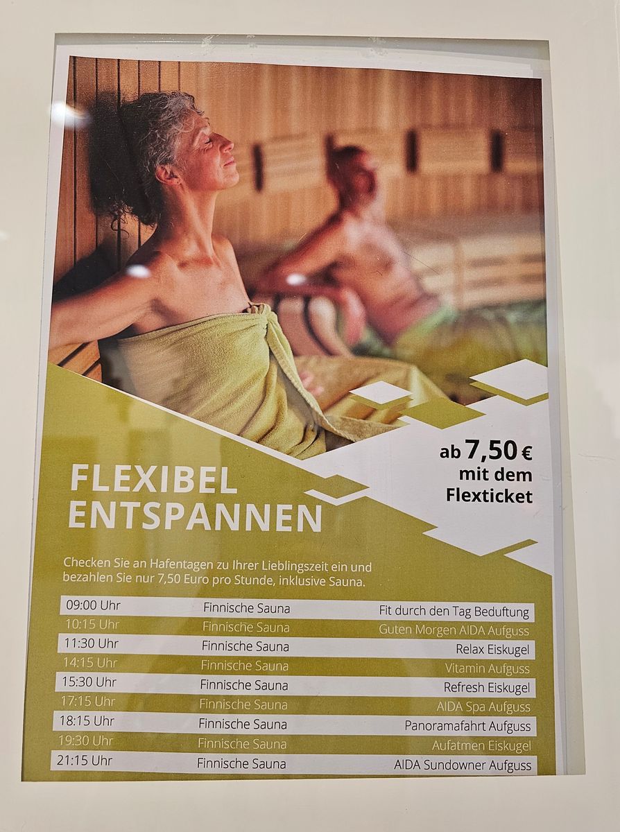 Ich persönlich bin gerne bereit für Sauna zu zahlen. Hab gerade erst auf der MS7 erlebt wie überfüllt die "umsonst" Sauna ist.