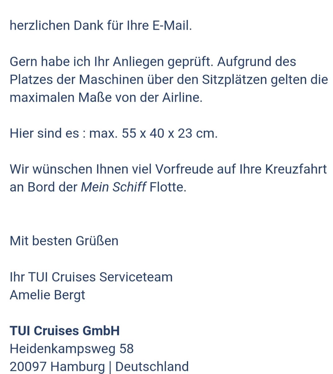 so bezüglich Rückflug Heraklion Frankfurt mit Tui Belgium habe ich folgende Antwort von TUI Cruises bekommen: