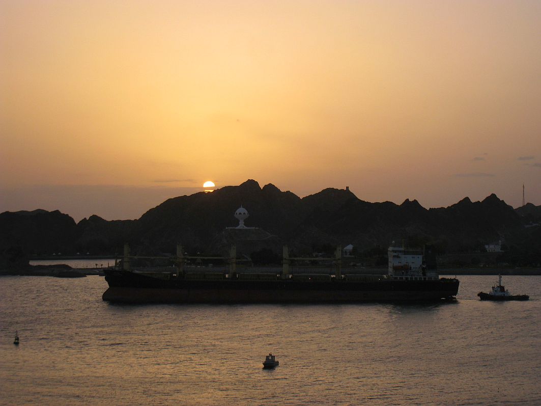 Ganz besonders zog mich damals jedoch die spektakuläre Kulisse des Naturhafens von Muscat in ihren Bann. Zweimal konnte ich dort den Sonnenaufgang über den gezackten Bergen genießen .....