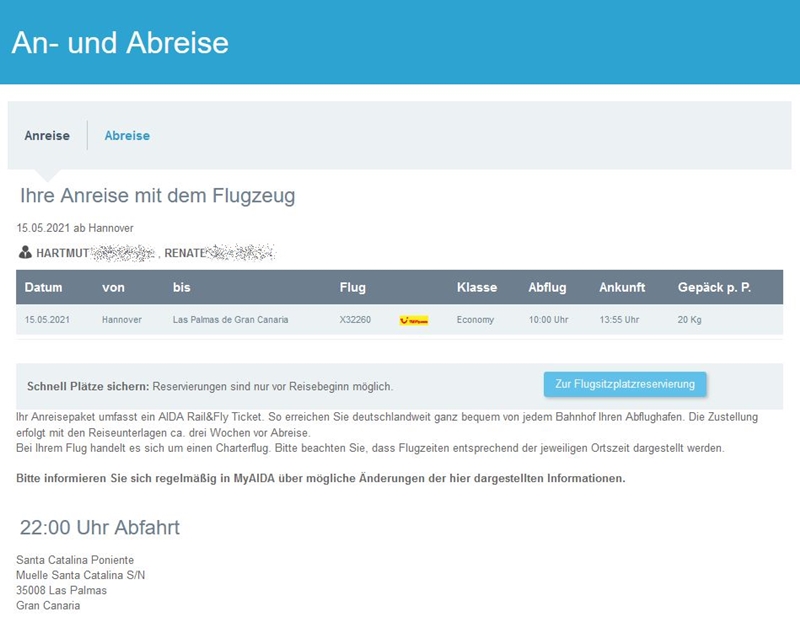Im Vorwochenthread steht es schon geschrieben und es gilt laut My Aida auch für diese Woche: Die Flugzeiten (hier Düsseldorf) wurden aktuell nochmals angepasst. Der Eurowings-Flug startet jetzt um 09:05 Uhr. Der Rückflug dann entsprechend um 13:45 Uhr.