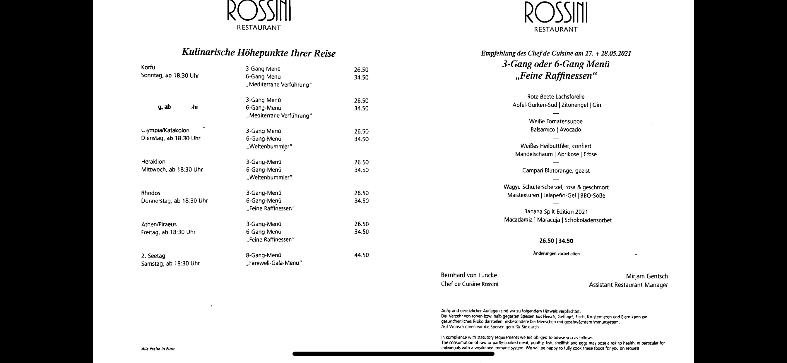 gestern war die Kochschule im Buffalo zumindest auf der Leinwand am Pooldeck angekündigt.
