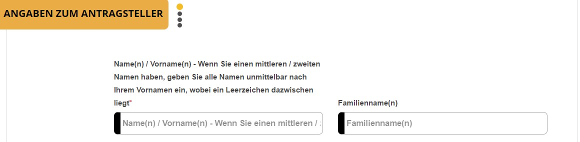 Dann wäre im ersten Feld wirklich nur der/die Vorname(n) einzugeben. Und bei Surname(s) der Nachname.