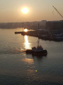 19.00 Uhr war zum Ablegen angekündigt und pünktlich geht sie los, die Panoramafahrt. Genauso pünktlich geht die Sonne unter und taucht die Ausfahrt aus der Kieler Förde in stimmungsvolles Licht.