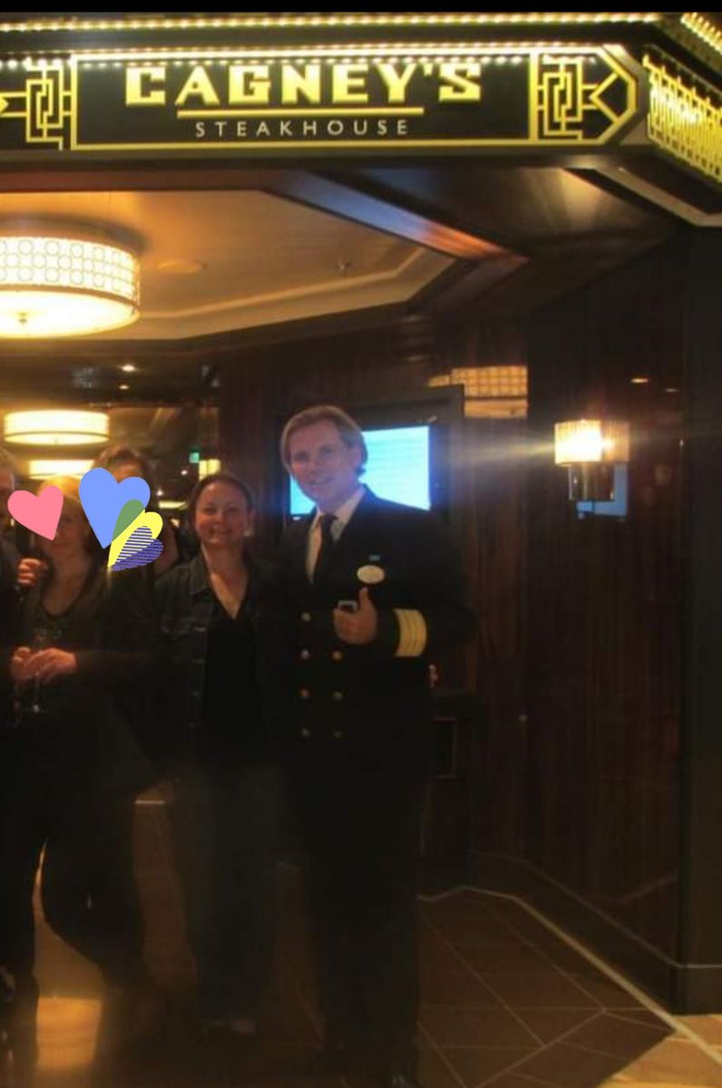 Heute Morgen kam der Klaus zu mir und hat kurz mit mir gesprochen wie das Schiff mir gefällt und mir seine Visitenkarte gegeben. Ich traf ihn ja zweimal als er mit anderen höheren unterwegs war und sagte da nur kurz auf deutsch was zu ihm. Und heute morgen saß ich in der Observation Lounge und war im Handy vertieft und dann stand er plötzlich neben mir und hat mich angesprochen.