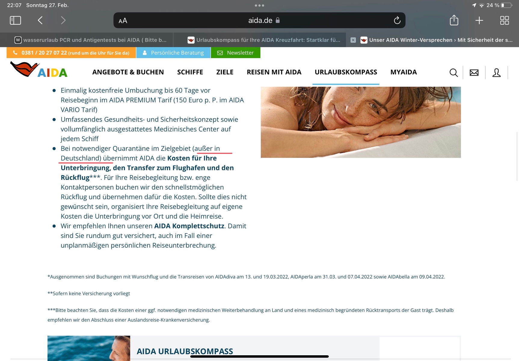 Betroffen nicht, aber auf den letzten beiden Primafahrten waren von 1000 Gästen 100 positiv. Keine Kostenübernahme bedeutet das. Das wird AIDA zu teuer geworden sein.