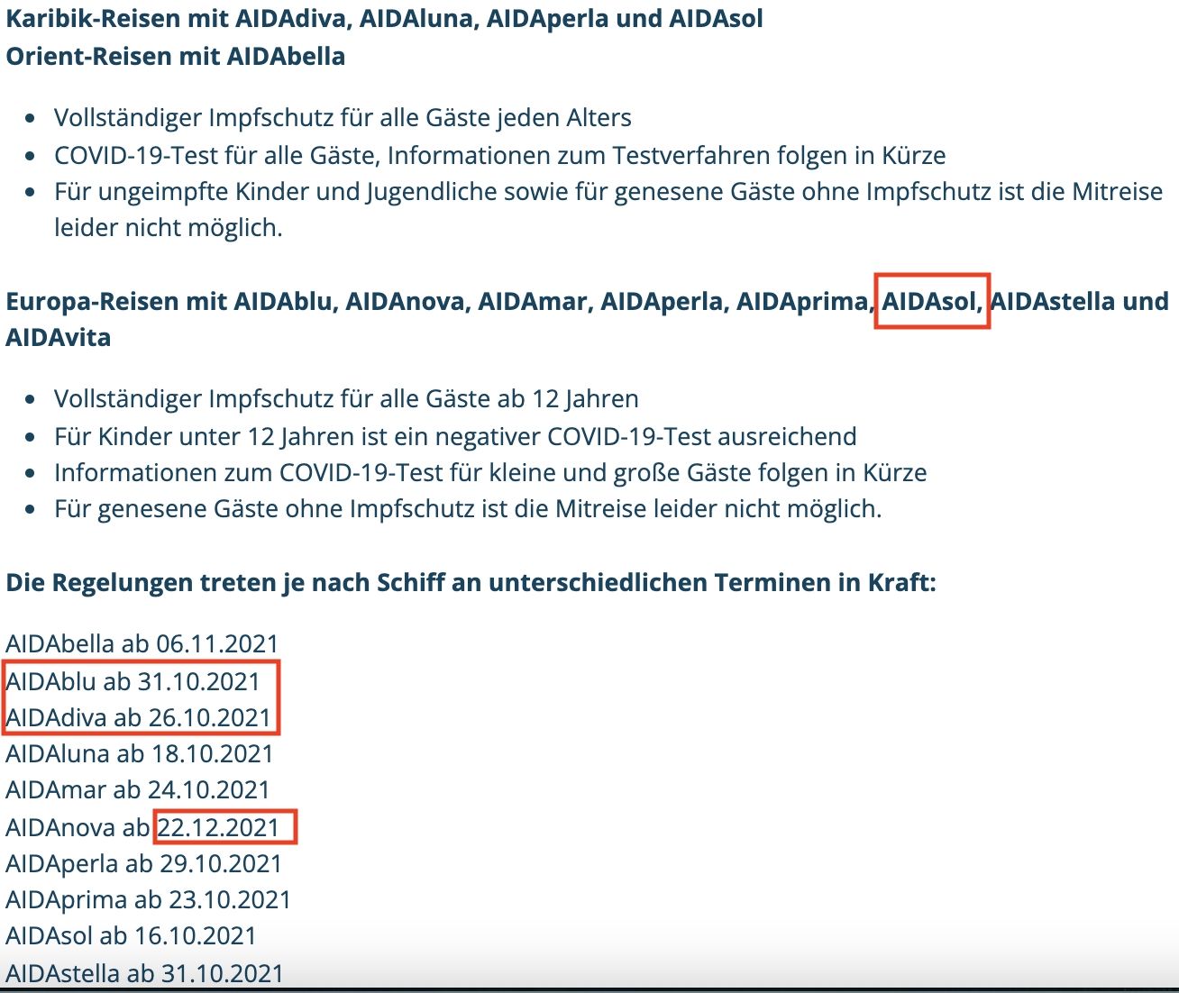 PCR und Antigentests bei AIDA Zusammenfassung in Beitrag #7089