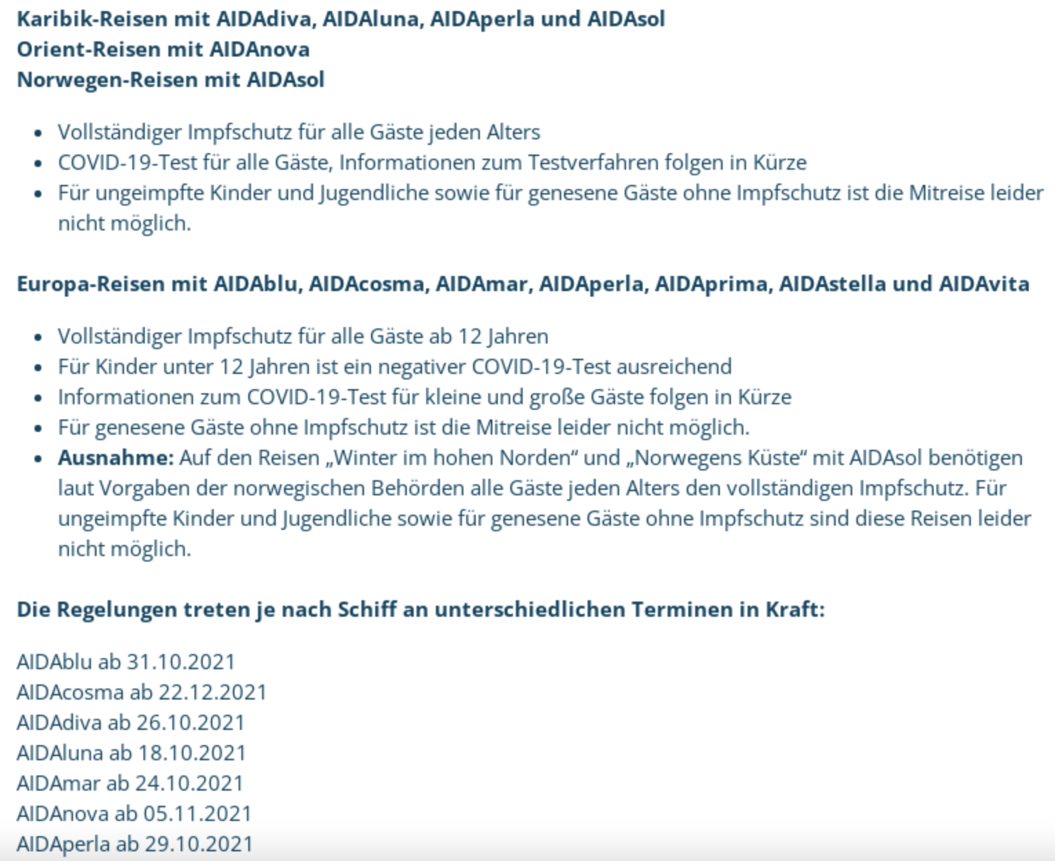 PCR und Antigentests bei AIDA Zusammenfassung in Beitrag #7089