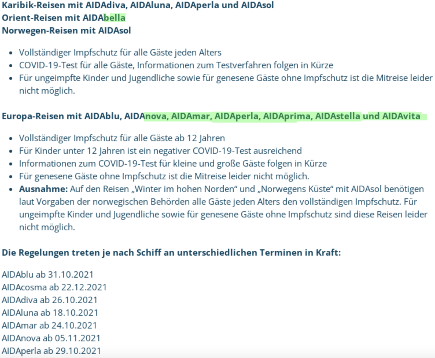 PCR und Antigentests bei AIDA Zusammenfassung in Beitrag #7089