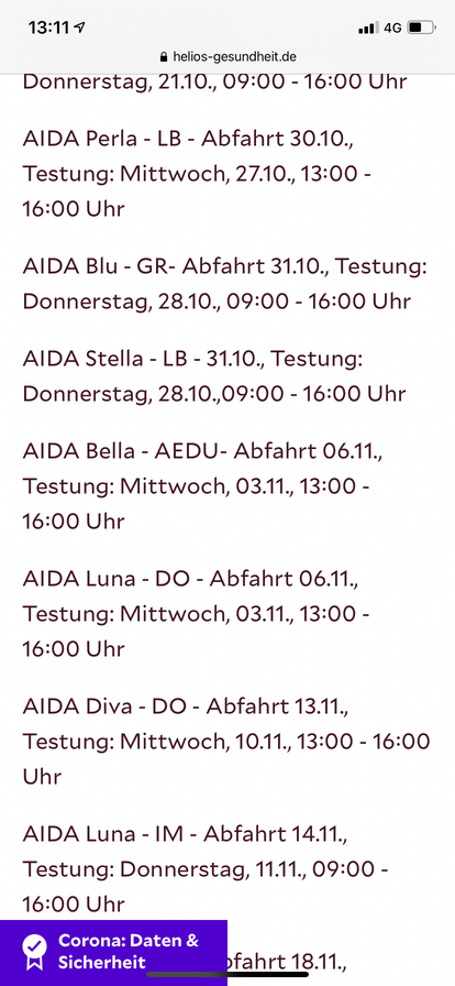 Für unsere Tour mit der Bella benötigen wir lt. https://www.helios-gesundheit.de/kliniken/wippe…giere-der-aida/ einen Test.
