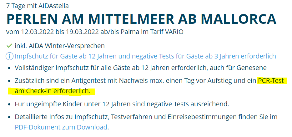 PCR und Antigentests bei AIDA Zusammenfassung in Beitrag #7089