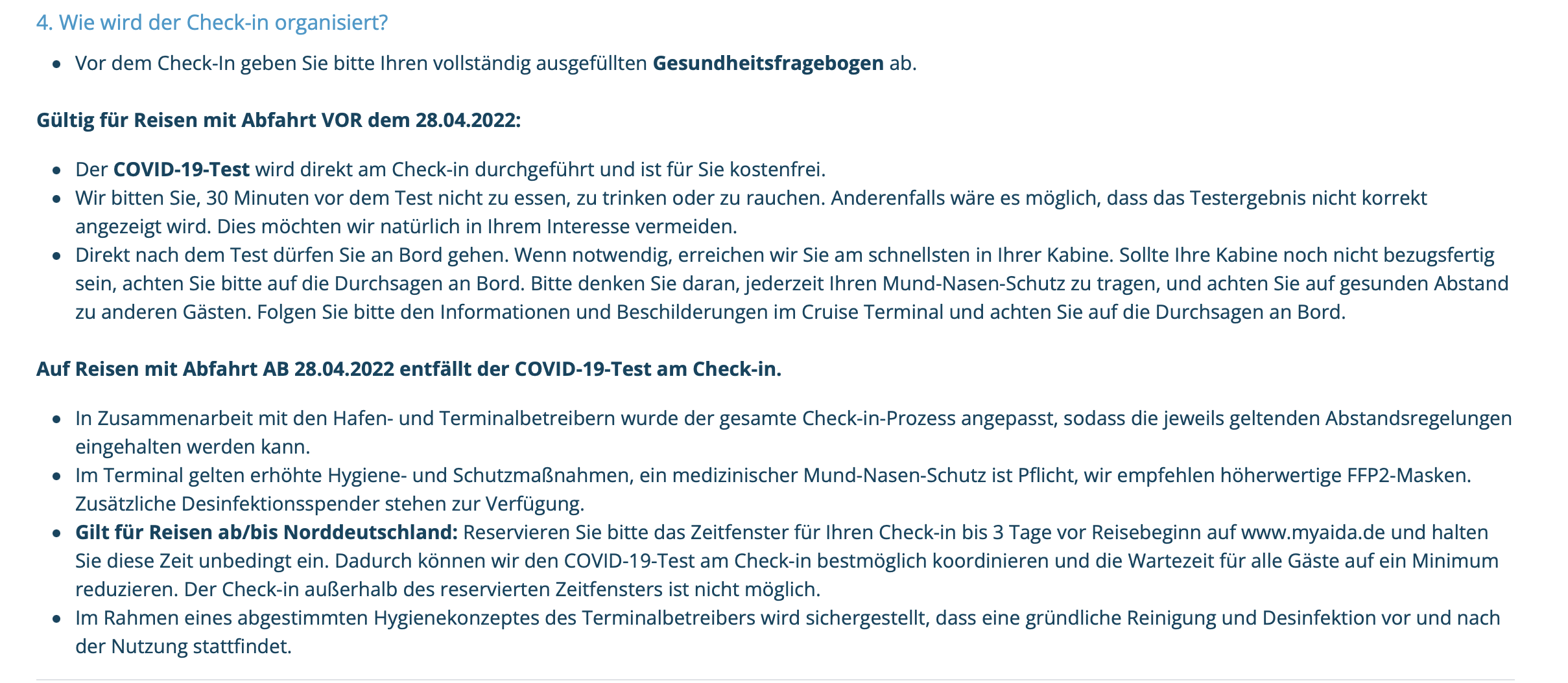 Auf der Aida Seite steht der Test am Check in entfällt ab dem 28.04..?