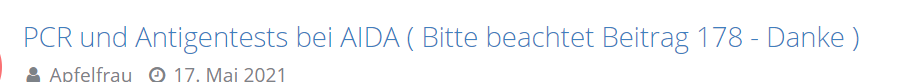 PCR und Antigentests bei AIDA Zusammenfassung in Beitrag #7089
