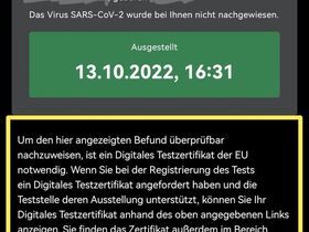 Das reicht nicht aus.Lies Dir Deinen Test mal durch, Du musst das digitale Testzertifikat der EU herunterladen, geht ganz einfach! Oder den Test als PDF Datei herunterladen und ausdrucken.