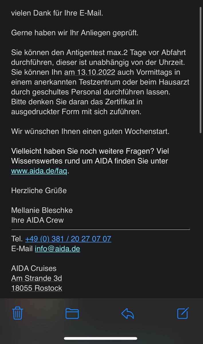 PCR und Antigentests bei AIDA Zusammenfassung in Beitrag #7089