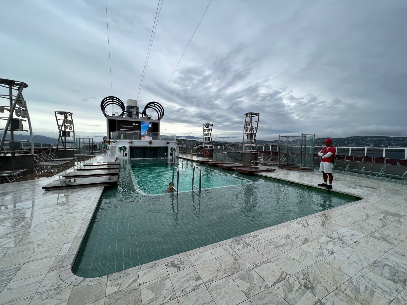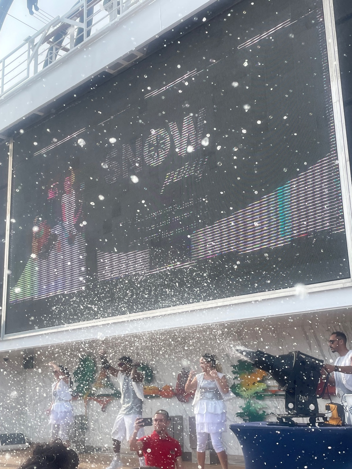 Zum sail away aus la Spezia gab es heute die Snow Party am pooldeck