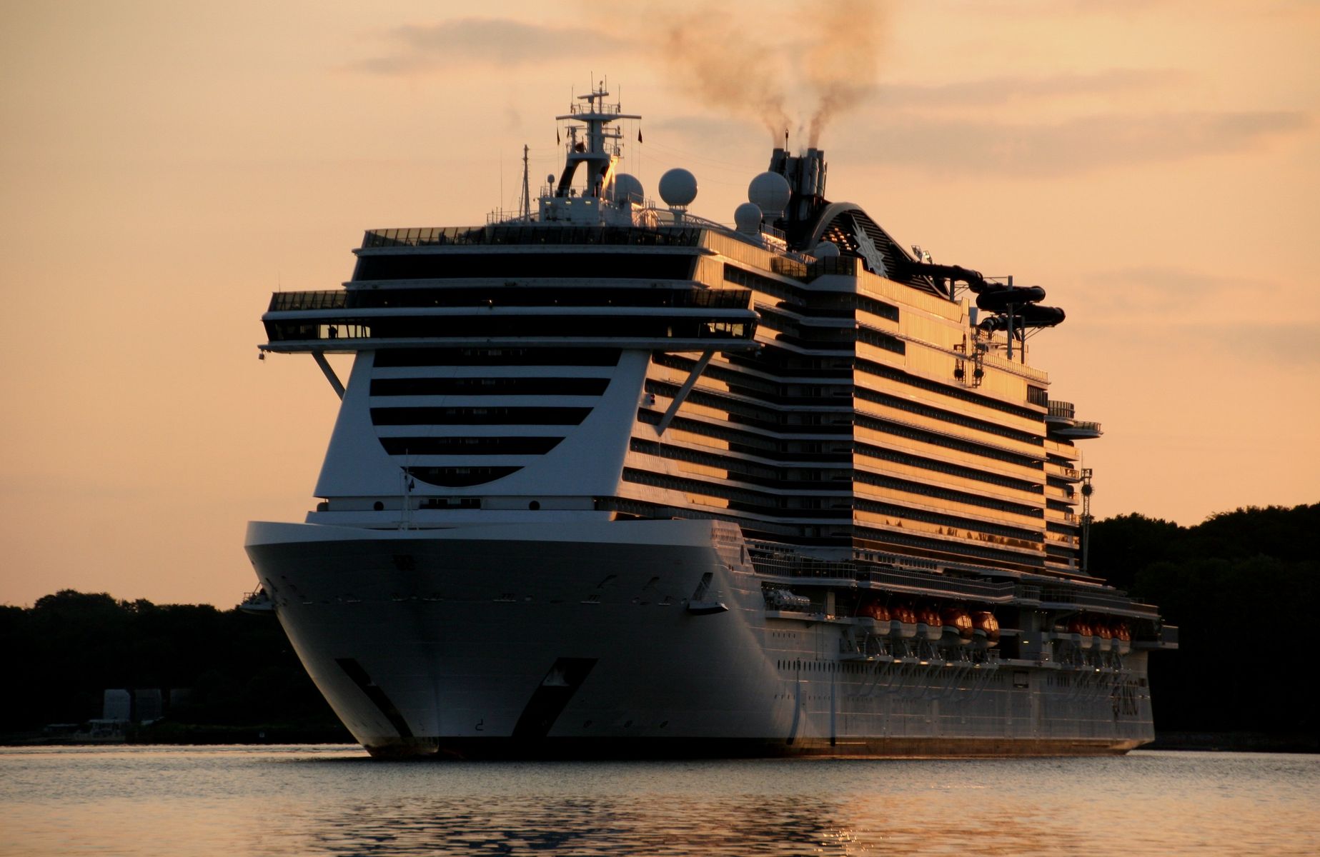 Die "MSC Seaview" fährt um 06:03h in einer morgendlichen,stimmungsvollen Atmosphäre ihr Einlaufmanöver auf der "Kieler Förde" zum Liegeplatz 1 im Ostuferhafen