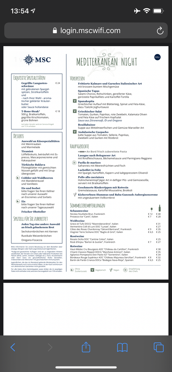 Anbei sende ich Euch noch die Speisekarte des heutigen Abends.