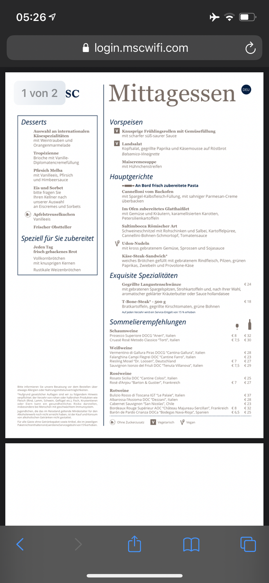 Das Menü hatten wir gestern auf der Splendida :hunger: