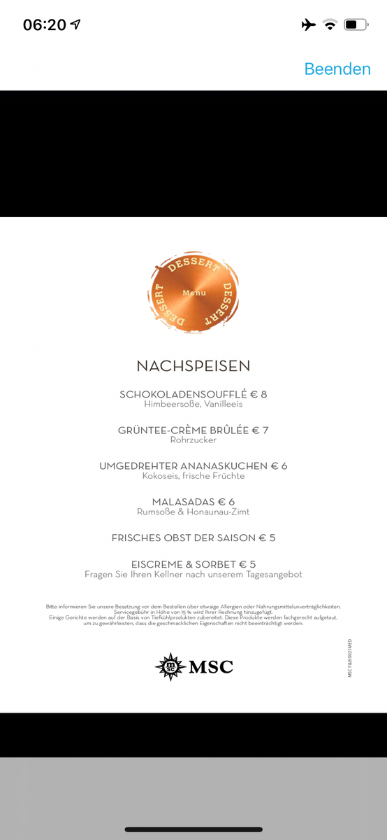 Das Menü hatten wir gestern auf der Splendida :hunger: