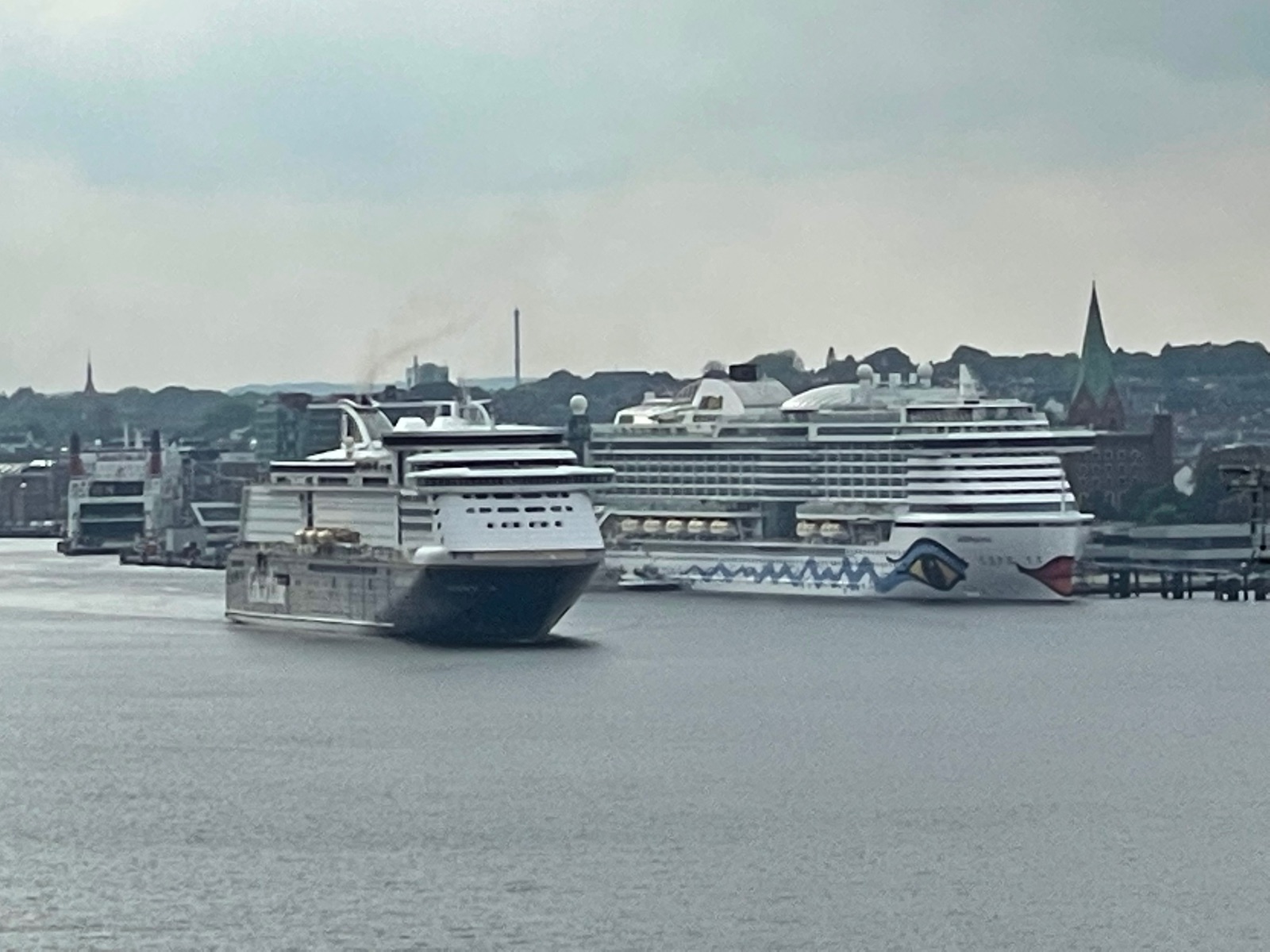 ). Das Ablegen fand dann auch nicht um 20:00 Uhr statt, sondern erst gegen 21:00 Uhr. Der Wind begann da, etwas nachzulassen. War aber alles in allem sehr ungemütlich. Ich stand deswegen morgens auch nicht auf der Westmole, um sie einlaufen zu sehen.