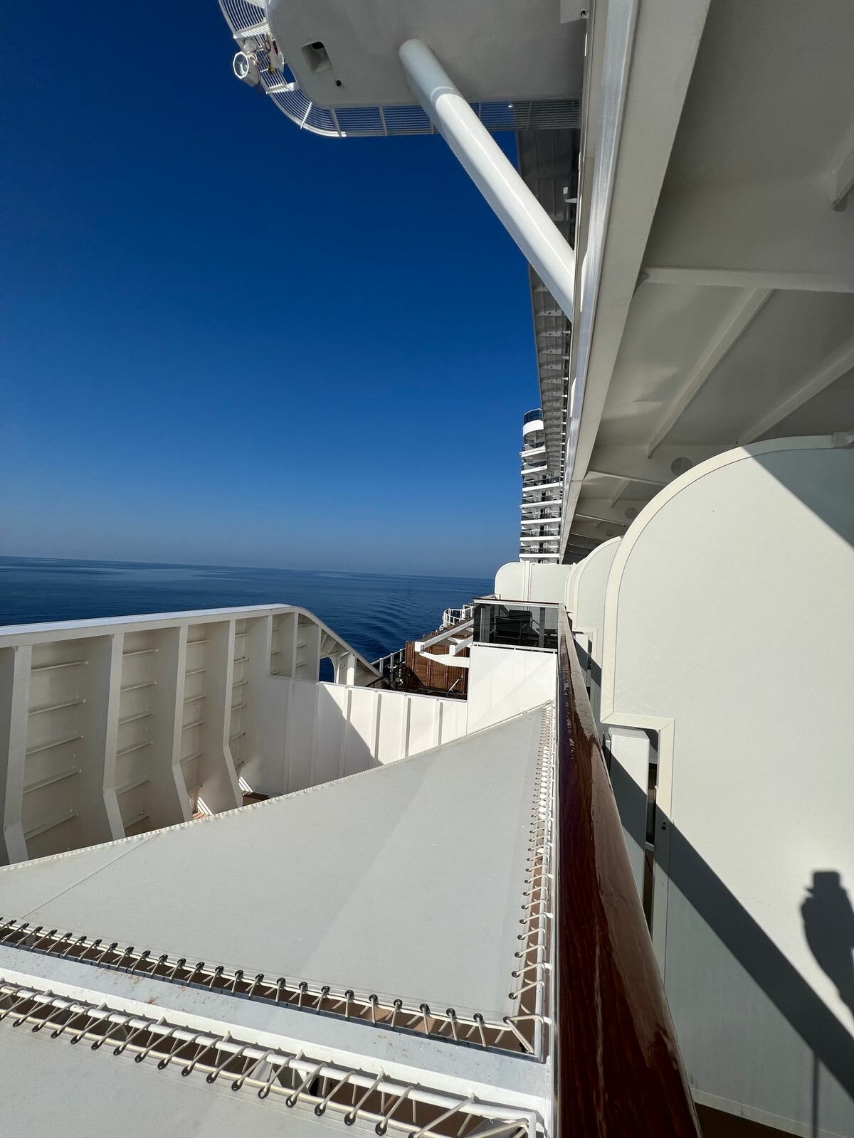 Gestern von unserer ersten MSC Kreuzfahrt zurück gekommen. Hier mal ein paar Bilder der Kabine, die ich aufgrund der Lage weit vorne nicht mehr wählen würde. Wir hatten auch keine echte Wahl, da es die einzige Kabine war, die uns 4 Tage vor Abfahrt angeboten wurde: eine Balkonkabine BR1 "Deluxe". Der Crew-Außenbereich ist direkt darunter und nur mit Segeltuch abgeschirmt. Man hat bis spät in die Nacht (2:00 Uhr) Lautstarke Unterhaltungen. Außerdem hat man einen Blick auf die Stahlwand des Vorderschiffs. Naja. Anfängerpech :trrink1: