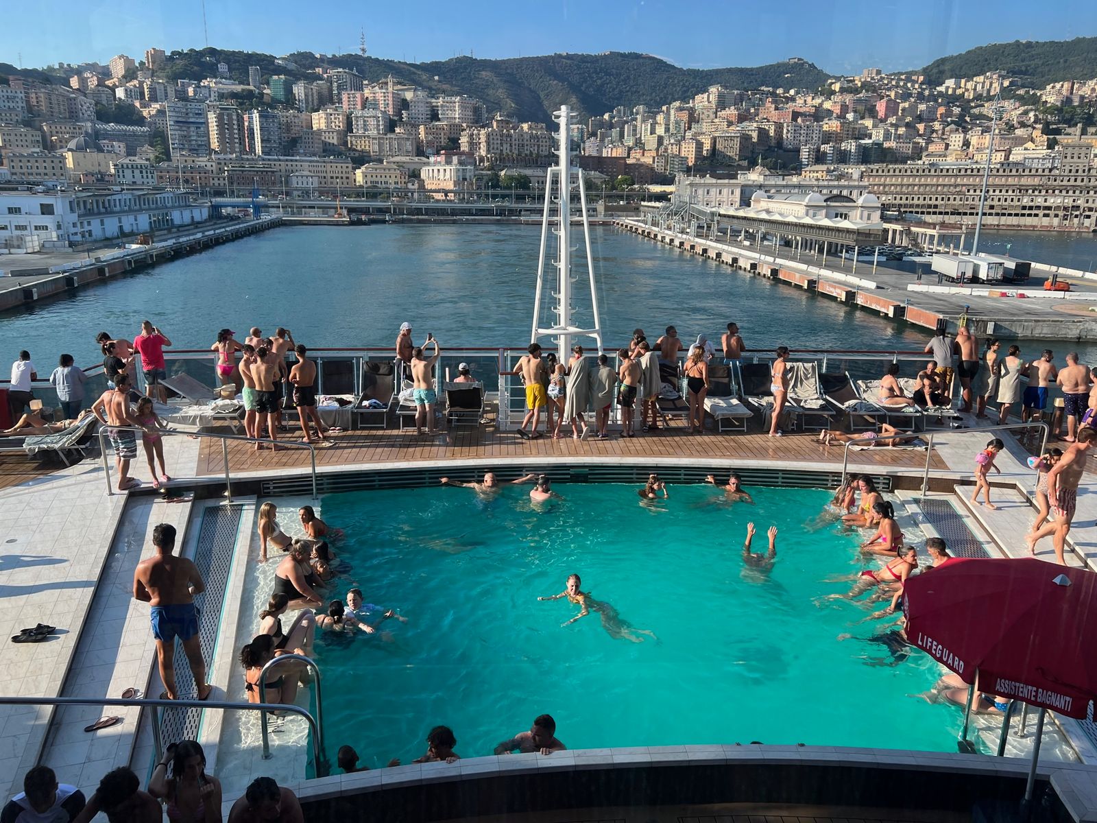 Zum sail away aus la Spezia gab es heute die Snow Party am pooldeck