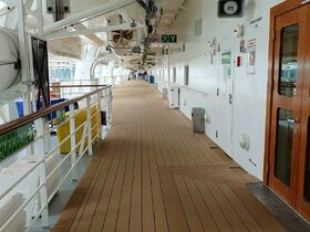 Das Deck 5 mit dem schönen Außen Fast-Rundgang des Schiffes ist ja auch nur ein Deck höher und somit hat man tolle Ausblicke aufs Meer und Häfen :thumbsup: