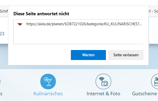 Allerdings habe ich auch Probleme unter myaida wenn ich unter Reise planen/Reiseplanung und dann auf ein Symbol in der Menüleiste klicke kommt immer eine Fehlermeldung