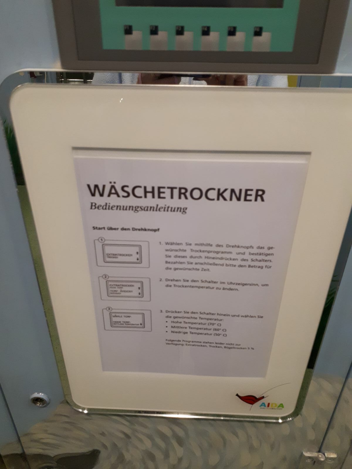 Wenn der Automat ( alles funktioniert über die Bordkarte) defekt ist … stellt Aida netterweise einen gr. Eimer mit Pulverwaschmittel hin