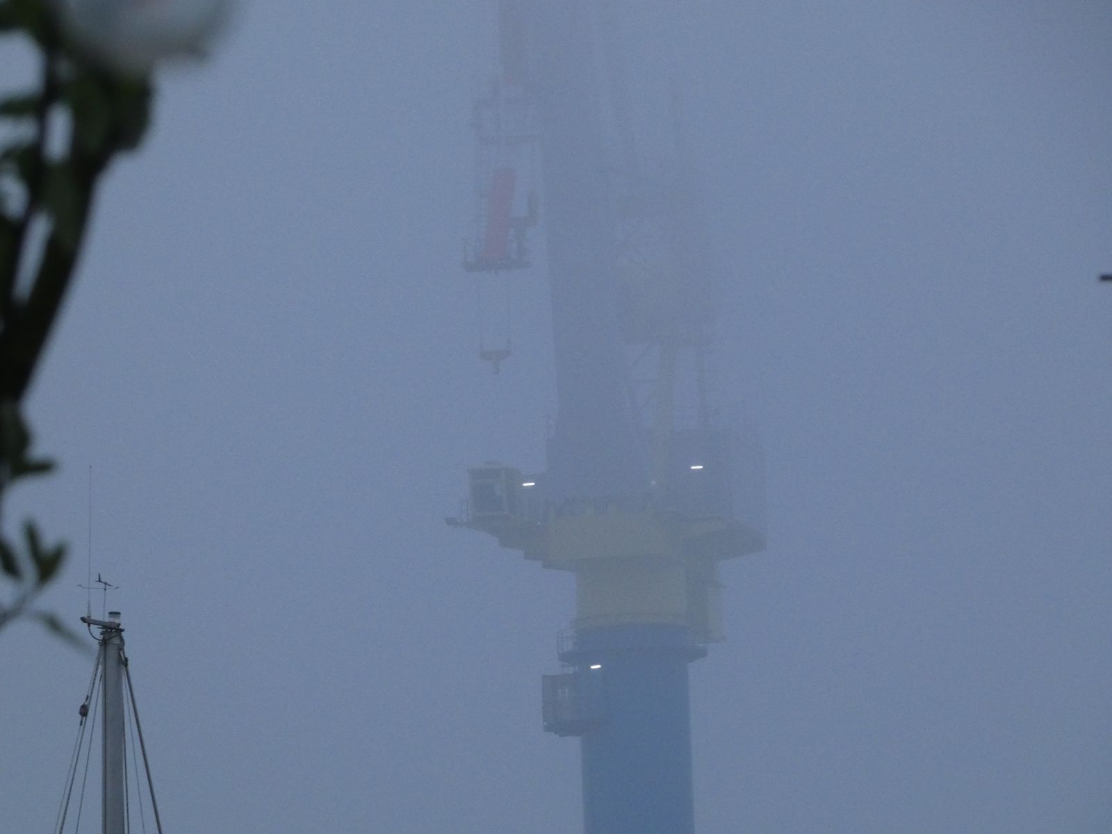 Wir haben uns den Pott schon mal von Nahem angesehen. Zur Zeit ist es hier sehr trübe. Der Saharastaub macht sich bemerkbar.