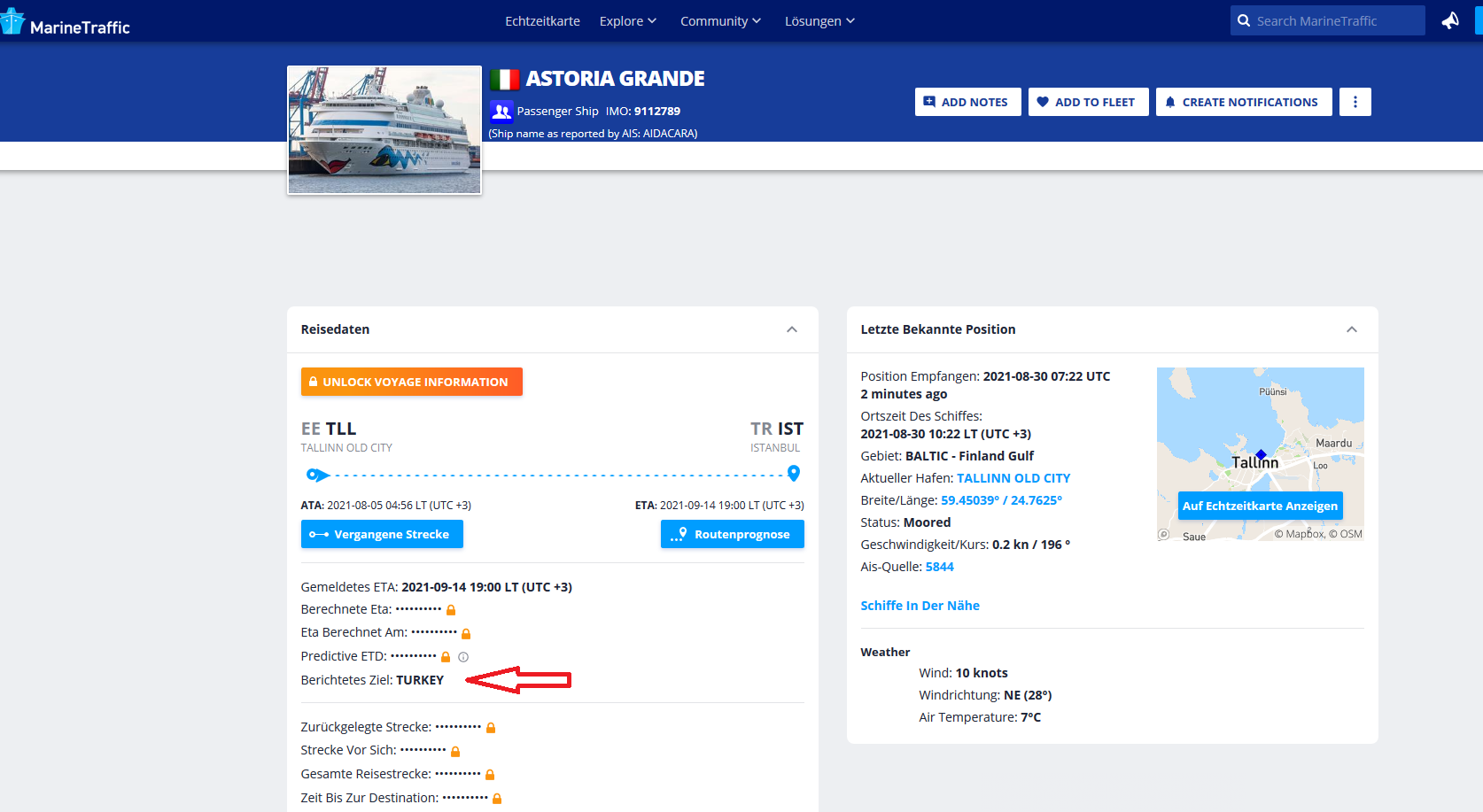 Ist halt die Frage, ob Marinetraffic automatisch aus „Turkey“ einfach Istanbul macht. Zumindest soll sie laut AIS weiterhin nur Turkey als Ziel angegeben haben wenn man auf Details kriegt.