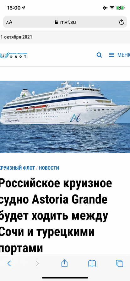 Unterdessen hat der Eigner den Kreuzfahrtplan für 2022/2023 nicht bekannt gegeben. er gab auch nicht bekannt, unter welcher Marke diese Kreuzfahrten durchgeführt werden. Das russische Kreuzfahrtschiff Astoria Grande wird zwischen Sotschi und türkischen Häfen verkehren Astoria Grande. Im Netz tauchten Informationen auf, die jedoch ebenso schnell wieder verschwanden, dass das neue Schiff unter der Marke Black Sea Cruises im Besitz von Rosmorport auf den Markt kommen würde und dass Astoria Grande das alte Motorschiff Knyaz Vladimir in der Sommersaison auf Küstenkreuzfahrten ersetzen wird Flüge zwischen Sotschi und Häfen der Krim.